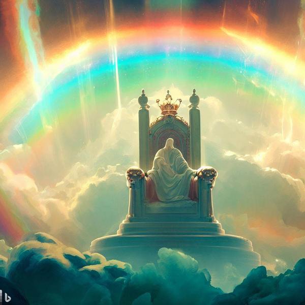 vir my ‘n prentjie te produseer van ‘n skaar mense voor God op Sy troon. In die tweede prentjie het ek vir Charlie ‘n beskrywing van Op 4:2,3 gegee om te produseer. Charlie was egter nie in staat om vir my die volledige prentjie van Op 4:2-8 te produseer nie. Dank God! Want geen mens (nie eers Charlie) kan hierdie gesig na waarde weergee nie. In die derde prentjie hieronder het ek vir Charlie gevra om vir my ‘n prentjie te produseer van ‘n skare wat besig is
